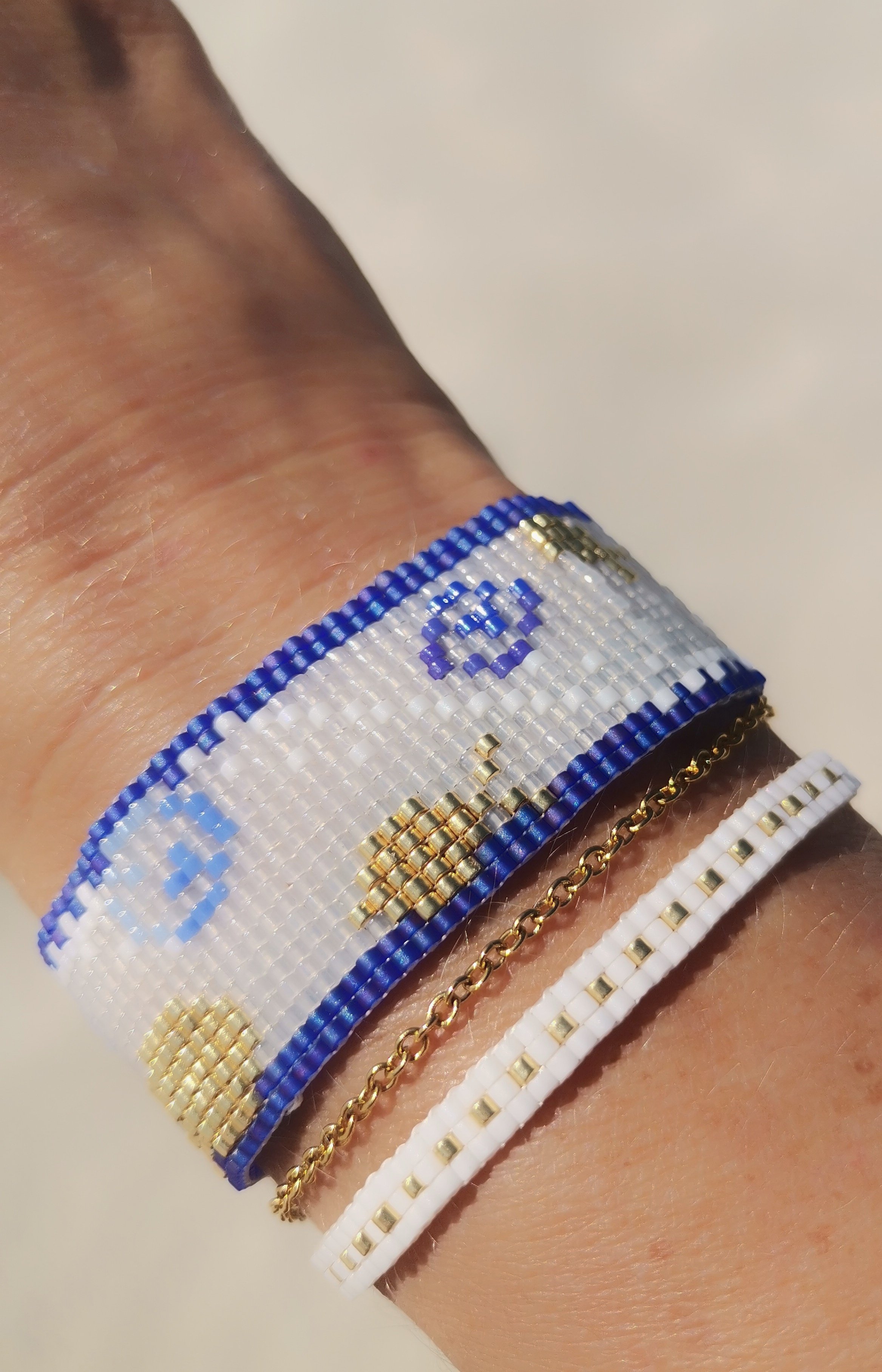 Dive into luxury with 'Fish Factory'—a finely crafted masterpiece of elegance and style. This handmade beaded gold and white-transparent-chained bracelet is your ticket to sophistication, inspired by the fluidity of the ocean's dance. Immerse yourself in the glamour of gleaming gold and pristine white beads, hand-threaded to perfection. Be the curator of your own style, and let 'Fish Factory' redefine your accessory game with a touch of underwater opulence. Elevate your look, one bead at a time